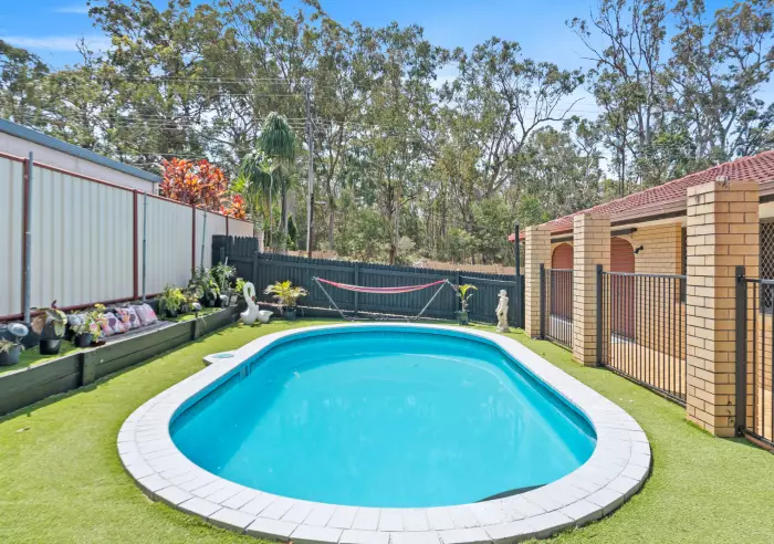 The covered entertaining area embraces its parkland setting, with treetop views, open green space, and the sound of birdlife creating a backdrop that soothes the soul. It's the perfect place to gather with friends and family, watch the kids play, or simply enjoy a quiet moment - with the pool adding the ultimate escape during the long hot summer months.