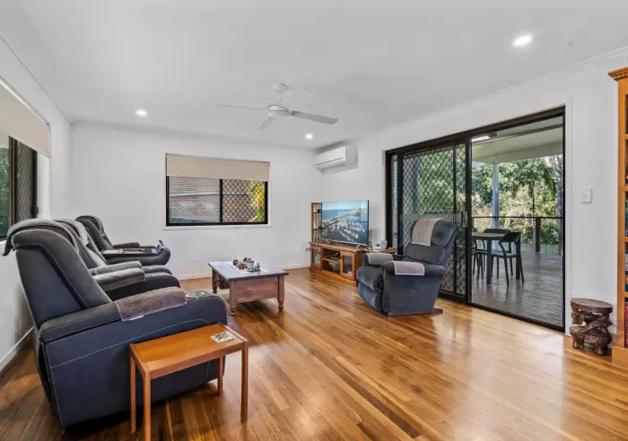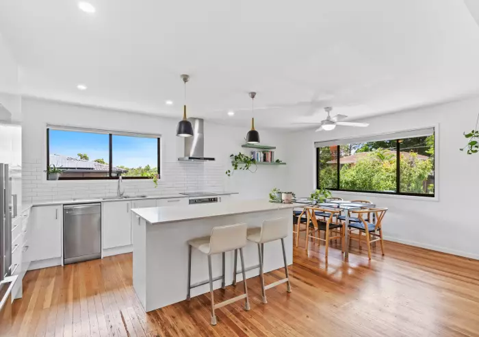 Polished timber floors and lots of natural light combine to create a welcoming home. The kitchen features stone benchtops complete with an island bench and induction cooktop. The open-plan living space is air-conditioned and ideal for entertaining, flowing out onto the covered deck which is an inviting space to relax or host family and friends all year round.